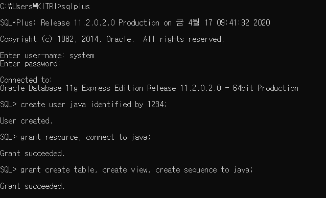 1. ์ค๋ผํด ์ค์น ํ CMD์ฐฝ