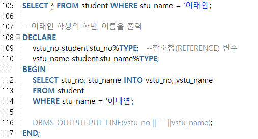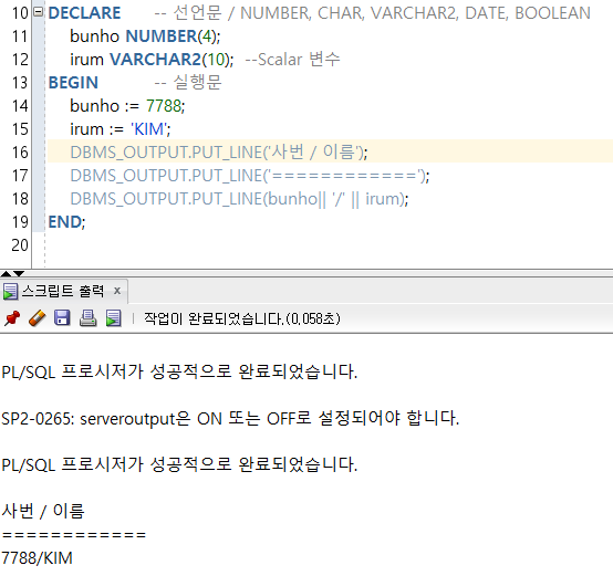 --VARIABLE ๋ณ์๋ช ์๋ฃํ;