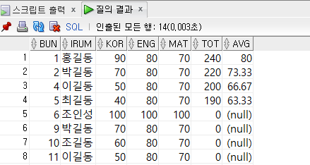 --DML์ ๋จ์ ๋ฐ์ดํฐ ํ์ฉ ํ๊ณ๋ก SQL ์ธ์ด์ ์ ์ฐจ์ ์ธ์ด์ ์์๋ฅผ ๋ํ์ฌ ๋ฐ์ดํฐ ์ฒ๋ฆฌ๋ฅผ
