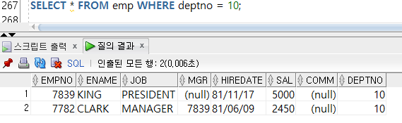 WHERE ์กฐ๊ฑด์ [์ค์นผ๋ผ/๋ํผ๋ณ์]