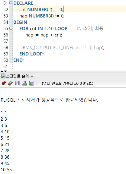 --3) ๋ฐ๋ณต๋ฌธ : LOOP ~ END LOOP, FOR ~ LOOP ~ END LOOP, WHILE ~ LOOP ~ END LOOP