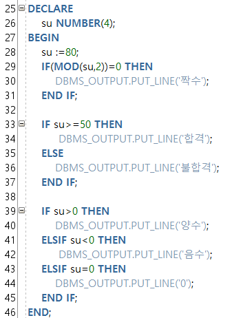 --2) ์ ํ์ฒ๋ฆฌ : IF ~ THEN ~ END IF, IF ~ THEN ~ ELSE ~ END IF, IF ~ THEN ~ ELSIF ~ END IF