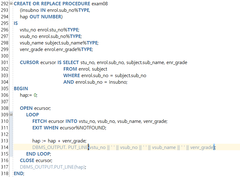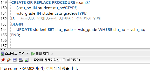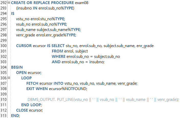 Oracle DBMS ๋ฐ SQL - ํ๋ก์์ (PROCEDURE), ์ ์ฅํ๋ก์์ ์ ์ ์ฅํจ์ ๋ณธ๋ฌธ