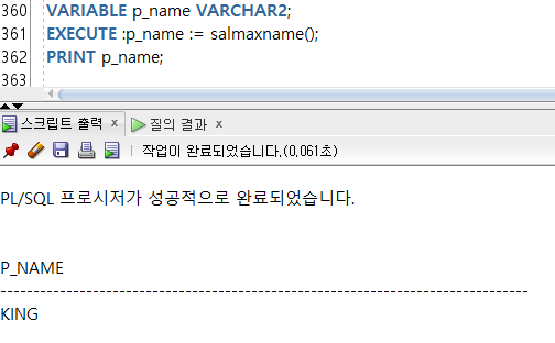REFCURSOR์ ์ฌ์ฉํด์ผํ๋๋ฐ, ๋ง์น JAVA์์ ํด๋์ค๋ฅผ ์ฌ์ฉํ๋ ๊ฒ๊ณผ ๋น์ทํ๋ค.