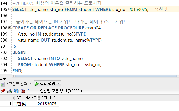 --์คํ์ด ์๋๋ค. OUTํ ๋ฐ์ดํฐ๋ฅผ ๋ฐ๋ ๋ณ์์ ์ ์ธ์ด ํ์ํ๋ค.