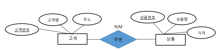1) ๊ณ ๊ฐ์ด ํ ๊ฐ ์ด์์ ์ํ์ ์ฃผ๋ฌธํ ์ ์๊ณ , ์ํ์ด ํ ๋ช ์ด์์ ๊ณ ๊ฐ์ ์ํด ์ฃผ๋ฌธ๋๋ค๋ฉด, ์นด๋๋ ๋ฆฌํฐ๋ N:M์ผ๋ก ํํํ ์ ์์ต๋๋ค.