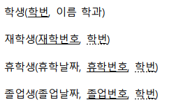 ํ์(์ด๋ฆ, ํ๋ฒ, ์ฃผ์, ์ ๊ณต, ์ทจ๋ฏธ)