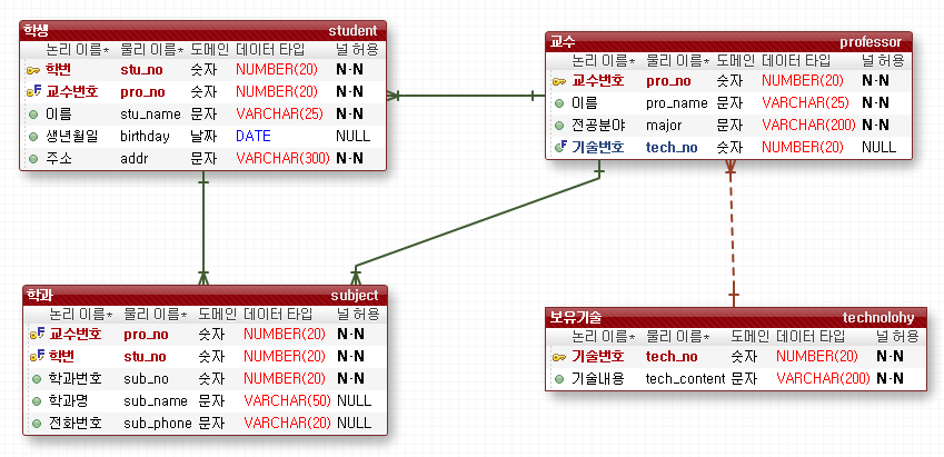 (ํ๊ณผ) 1 : N (๊ต์)