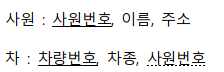 โป ๊ด๊ณ์คํค๋ง : ์ฌ์(์ฌ์๋ฒํธ(PK), ์ด๋ฆ, ์ฃผ์, ์ฃผ๋ฏผ๋ฒํธ)