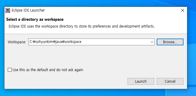 3. workspace ๊ฒฝ๋ก ์ง์ ํด์ฃผ๊ณ ๋ฐ์น