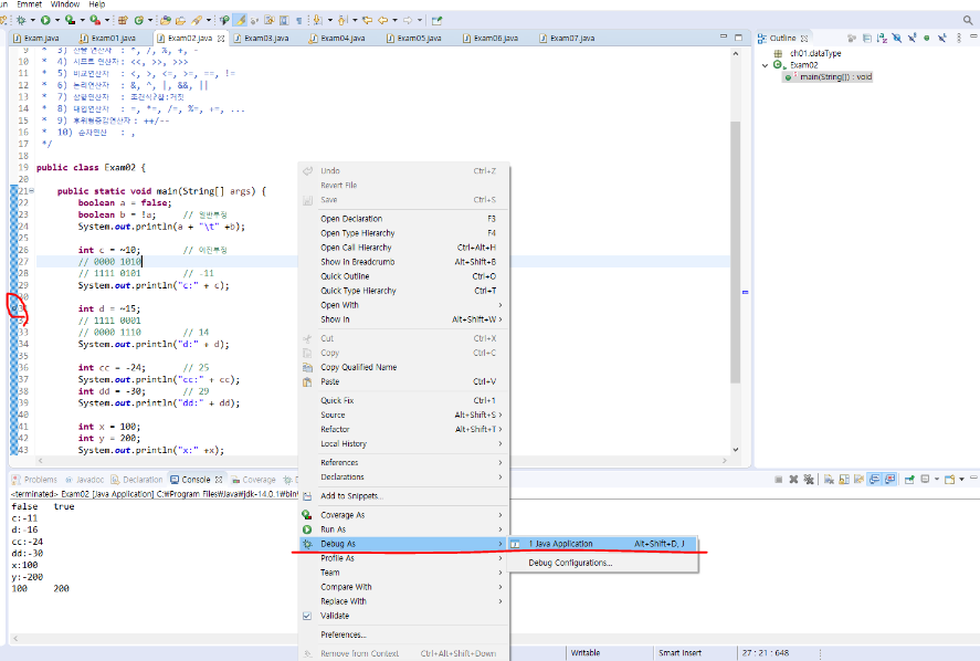 ๋ง์ฐ์ค ์ค๋ฅธ์ชฝ ํด๋ฆญ > Debug As > Java Application