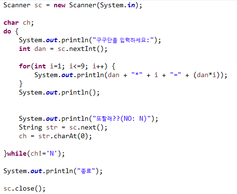 | Java ํ๋ก๊ทธ๋๋ฐ - ์ ์ด๋ฌธ(์กฐ๊ฑด๋ฌธ if๋ฌธ, switch๋ฌธ / ๋ฐ๋ณต๋ฌธ for๋ฌธ, while๋ฌธ) (0) | 2020.04.28 |