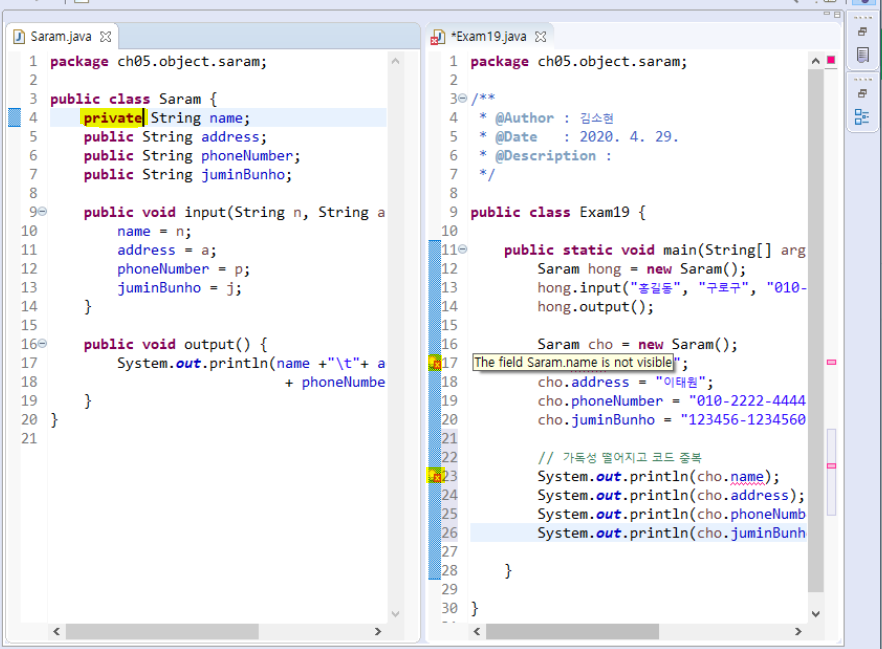 Java νλ‘κ·Έλλ° - μ κ·Όμ νμ(public, private) / μμ±μ λ³Έλ¬Έ