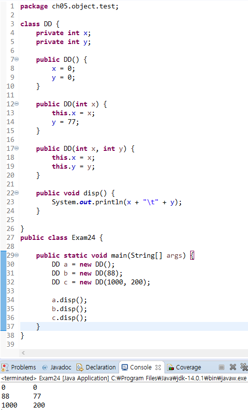 μμ±μμμ λ€λ₯Έ μμ±μλ₯Ό νΈμΆν λμλ λ€μκ³Ό κ°μ΄ this() μ½λλ₯Ό μ¬μ©νλ€.