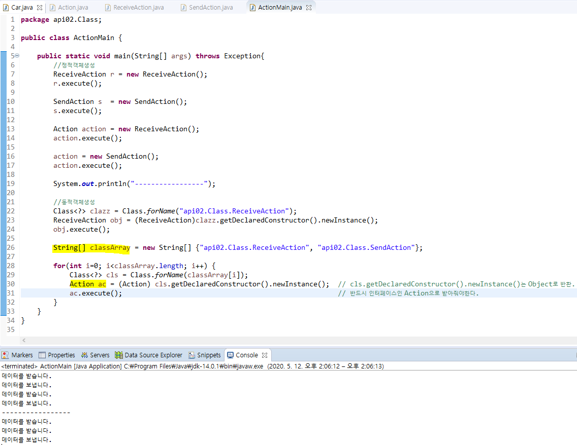Java ํ๋ก๊ทธ๋๋ฐ - [๊ธฐ๋ณธ API ํด๋์ค] Class ํด๋์ค(getClass(), forName(), getDeclaredConstructors(), newInstance())
