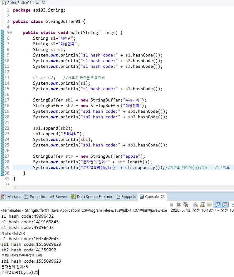 Java ํ๋ก๊ทธ๋๋ฐ - [๊ธฐ๋ณธ API ํด๋์ค] StringBuffer ํด๋์ค