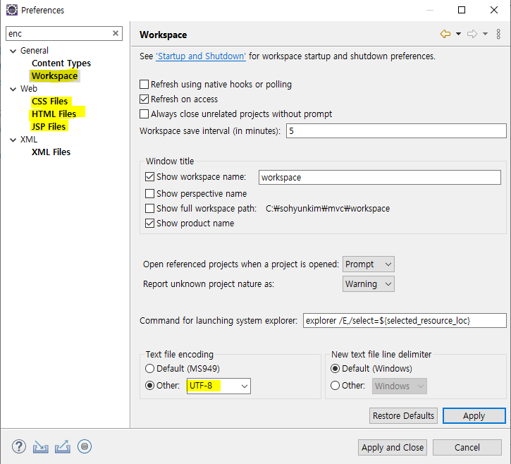 enc ์น๊ณ ๊ฒ์ํ ํ ์ํฌ์คํ์ด์ค, CSS, HTML, JSP UTF-8๋ก ์ธํ