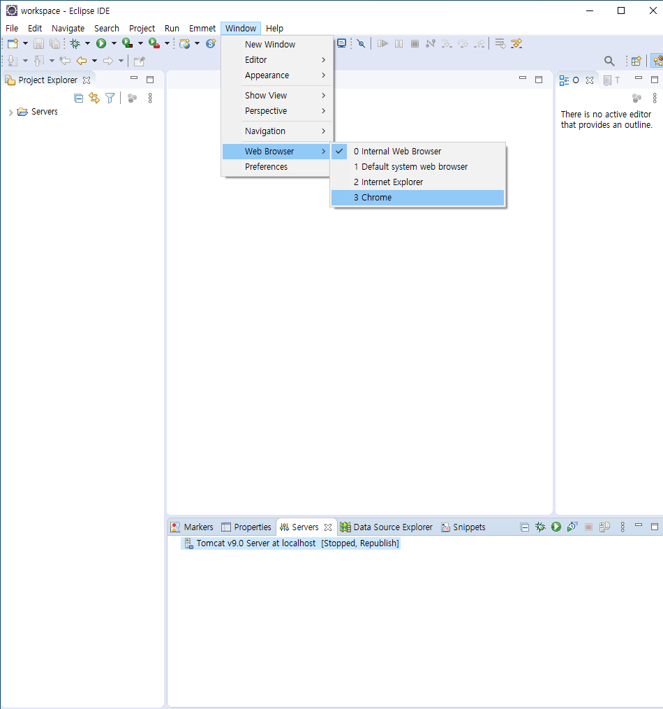 7. ํ ์คํธ๋ฅผ ์ํด ํฌ๋กฌ์ผ๋ก ์ค์ ํด์ค๋ค.