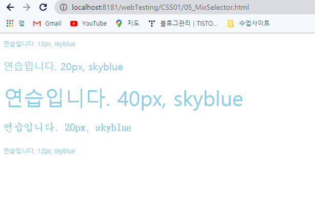 λλ€. 20px, skyblue, κΆμ체 </font>
