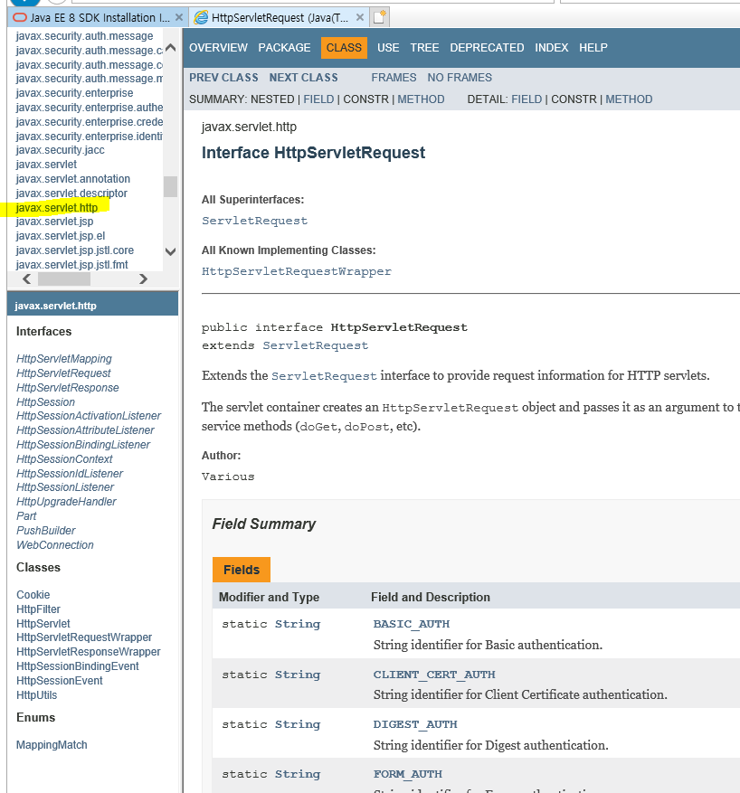 ํค๋์ ๋ณด, ํ๋ผ๋ฏธํฐ, ์ฟ ํค, URI, URL ๋ฑ์ ์ ๋ณด๋ฅผ ์ฝ์ด ๋ค์ด๋ ๋ฉ์๋๋ฅผ ๊ฐ์ง๊ณ ์๋ค.
