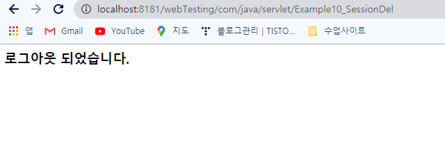 out.print("<h3> ๋ก๊ทธ์์ ๋์์ต๋๋ค. </h3>");
