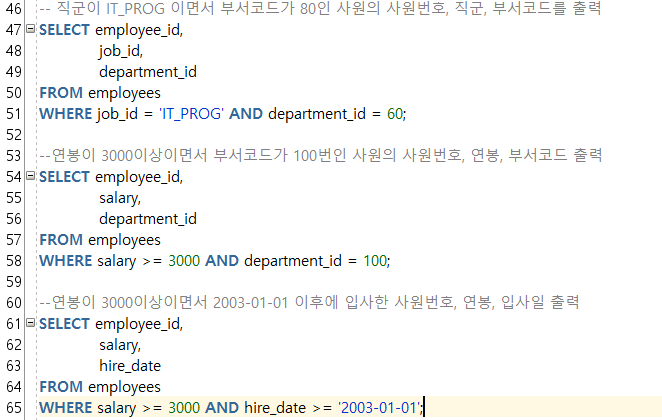 Oracle DBMS ๋ฐ SQL - SELECT ๋ฌธ(WHERE์ , ๋น๊ต์ฐ์ฐ์)