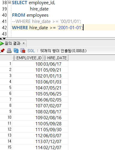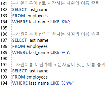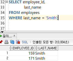 ๋ํจ๋ 2020. 4. 8. 11:28--8. WHERE ์ : where ์กฐ๊ฑด์ ๊ตฌ์ฑ์ ์ปฌ๋ผ, ์ฐ์ฐ์, ๋น๊ต๋์ ๊ฐ