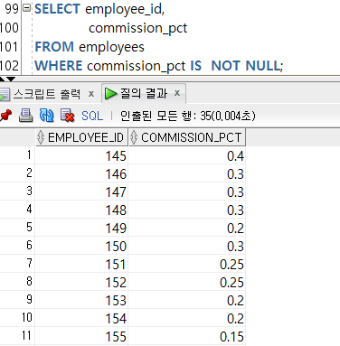 NOT ์ null ๊ฐ ์ฒ๋ฆฌ ํ ๋ ์ฌ์ฉํ๋ค.