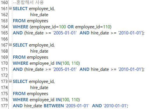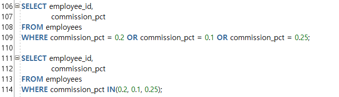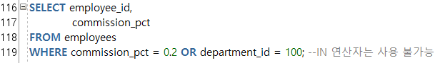 --IN(a, b, c) ์ฐ์ฐ์ : a์ด๊ฑฐ๋ b์ด๊ฑฐ๋ c์ธ ์กฐ๊ฑด๊ฐ