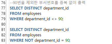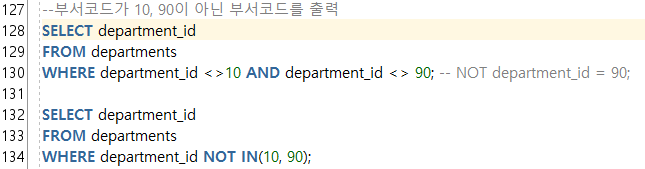 NOT ํค์๋๋ฅผ ํ์ฉํด์ ์ธ ์ ์๋ค.