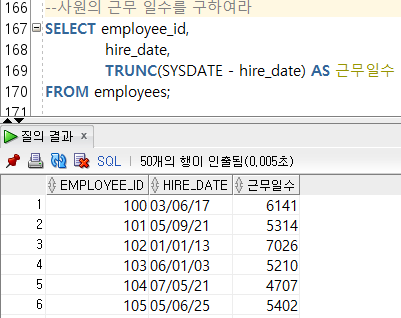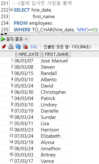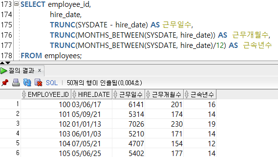 --3-3) MONTHS_BETWEEN(๋ ์ง, ๋ ์ง) / ๋ ์ง์ ๋ ์ง ์ฌ์ด์ ๊ฐ์ ์๋ฅผ ๊ณ์ฐ