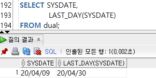 --3-5) LAST_DAY(๋ ์ง) / ์ฃผ์ด์ง ๋ ์ง๊ฐ ์ํ ๋ฌ์ ๊ฐ์ฅ ๋ง์ง๋ง ๋ ๊ฒ์