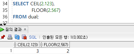 --1-3) CEIL(๊ฐ) / FLOOR(๊ฐ) : ์์ ์ดํ ๋ฌด์กฐ๊ฑด ์ฌ๋ฆผ, ๋ฒ๋ฆผ