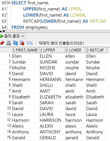 --2-3) INITCAP(๋ฌธ์ ๋๋ ๋ฌธ์์ด) ์ฒซ ๊ธ์๋ง ๋๋ฌธ์๋ก ๋ณํ