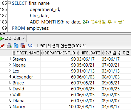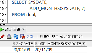 --3-4) ADD_MONTHS(๋ ์ง, ์ซ์) / ์ฃผ์ด์ง ๋ ์ง์ ์ซ์๋งํผ ๋ํ ๋ฌ