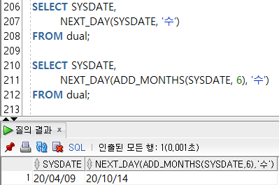--3-6) NEXT_DAY() / ์ฃผ์ด์ง ๋ ์ง๋ฅผ ๊ธฐ์ค์ผ๋ก ๋์์ค๋ ๊ฐ์ฅ ์ต๊ทผ ์์ผ์ ๋ ์ง