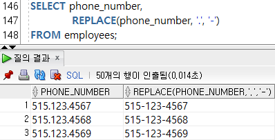 --2-13) REPLACE(๋ฌธ์์ด, ๊ธฐ์กด๋ฌธ์, ๊ต์ฒด๋ฌธ์) / ๋ฌธ์์ด์์ ํน์ ๋ฌธ์๋ฅผ ํน์ ๋ฌธ์๋ก ์นํํ๋ค.