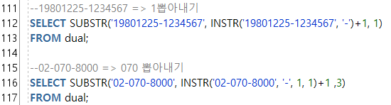--2-7) SUBSTR(๋ฌธ์์ด, ์์์์น, ๋ฌธ์๊ฐ์) : ํน์ ๋ฌธ์(๋ฌธ์์ด) ์ถ์ถ
