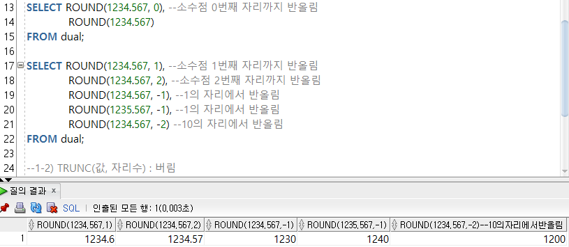 --1-1) ROUND(๊ฐ, ์๋ฆฌ์) ํจ์ : ๋ฐ์ฌ๋ฆผ