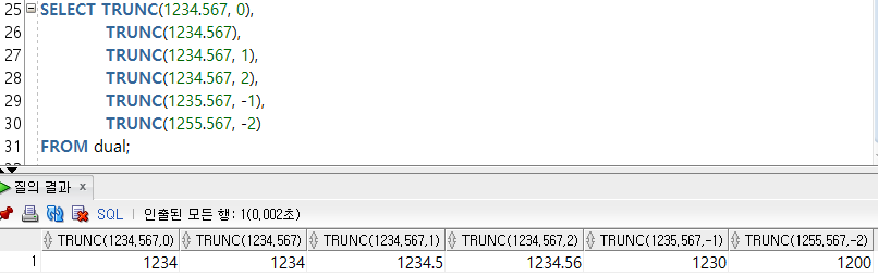 --1-2) TRUNC(๊ฐ, ์๋ฆฌ์) : ๋ฒ๋ฆผ