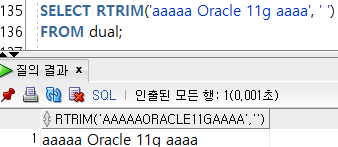 --2-11) RTRIM(๋ฌธ์์ด, ์ ๊ฑฐํ ๋ฌธ์) / ์ค๋ฅธ์ชฝ์ ํน์ ๋ฌธ์ ์ญ์