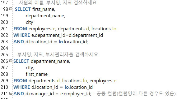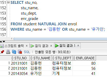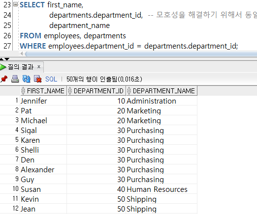 -- ๊ณตํต์ ์ผ๋ก ์กด์ฌํ๋ ์ปฌ๋ผ์ ๊ฐ์ด ์ผ์น๋๋ ํ์ ์ฐ๊ฒฐํ์ฌ ๊ฒฐ๊ณผ๋ฅผ ์์ฑ