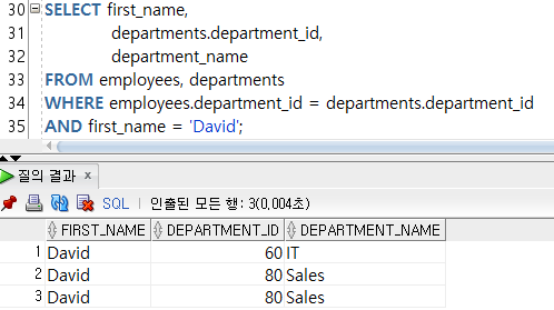 -- David ์ฌ์์ ์ด๋ฆ, ๋ถ์๋ฒํธ, ๋ถ์๋ช ๊ฒ์