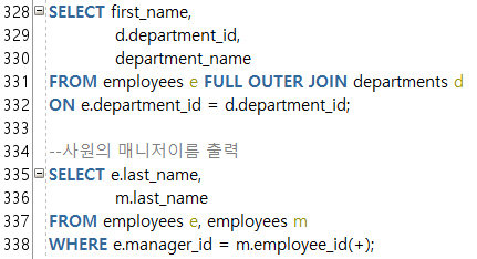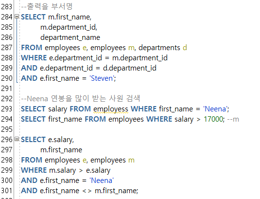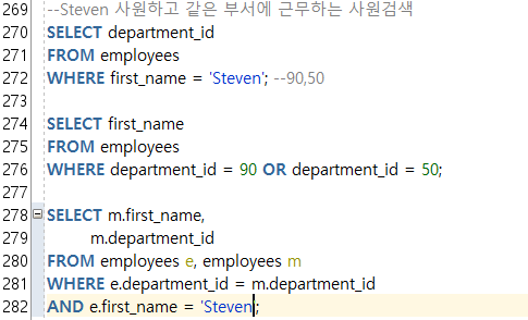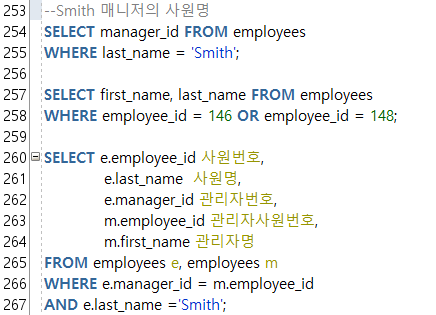 --4. Self Join : ์์ ๊ณผ ๊ฐ์ ํ ์ด๋ธ์ด ๋๊ฐ์ธ ๊ฒ์ฒ๋ผ ์๊ธฐ ์์ ์ ํ ์ด๋ธ๊ณผ ์กฐ์ธํ๋ ๊ฒ