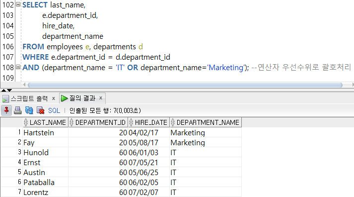 --IT๋ถ์์ Maketing ๋ถ์ ์์ ์ฌ์์ ์ด๋ฆ, ๋ถ์๋ฒํธ, ์ ์ฌ์ผ, ๋ถ์๋ช