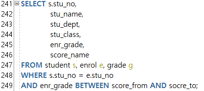 -- Non-Equi Join์ ์ค๋ณต๋๋ ์ปฌ๋ผ์ด ์์ผ๋ฉด ์๋๋ค.